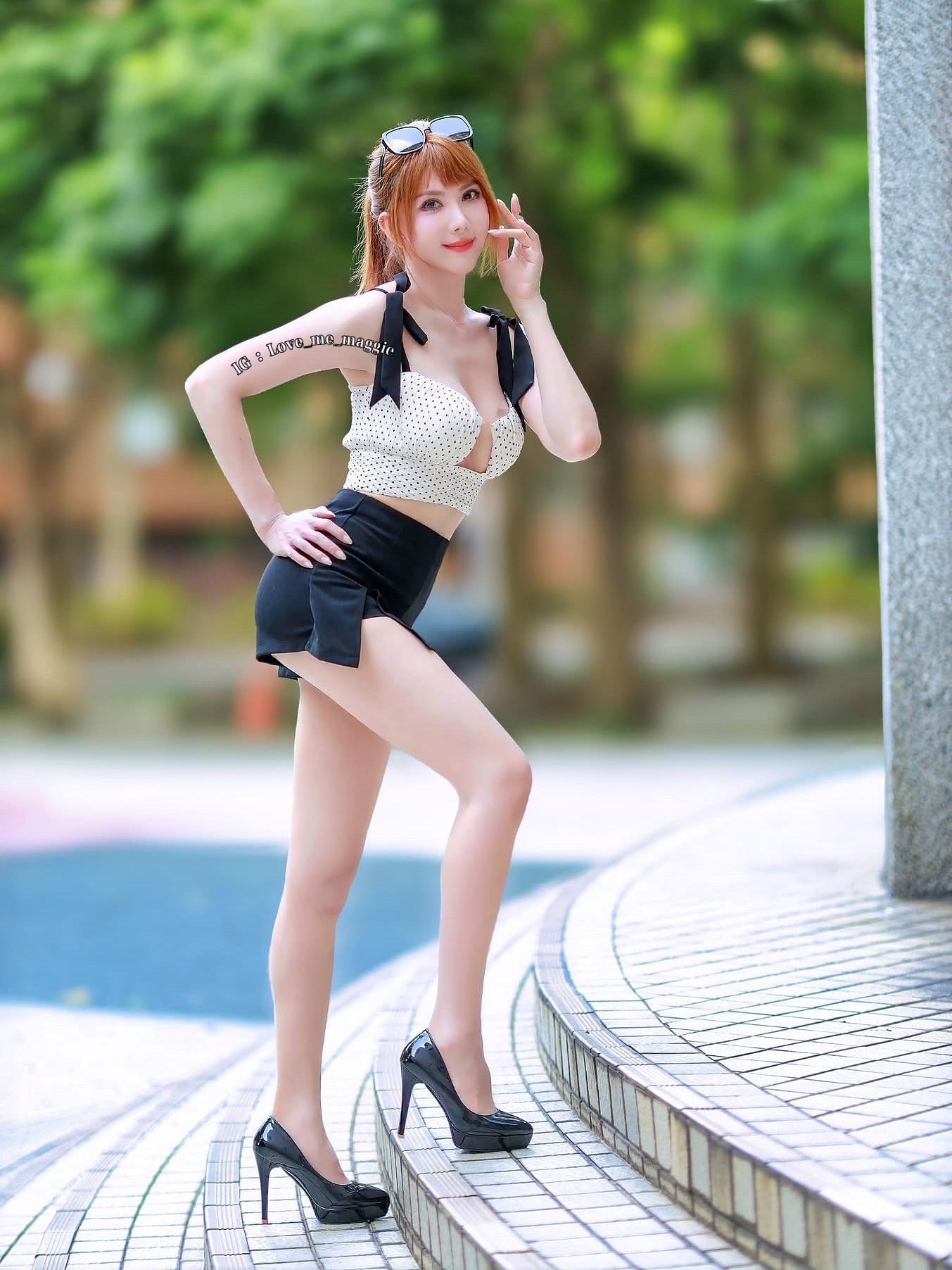 誰說穿比基尼一定要去海邊?羽晴 完美詮釋了何謂「景不醉人人自醉」。在青草湖優美的湖光山色襯托下,她穿著鮮紅色的綁帶比基尼,刻意搭配牛仔長褲並將褲頭大方敞開,露出那讓人血脈賁張的腰間線條。這種「不經意」的性感,最能勾起男人的保護慾與佔有慾。