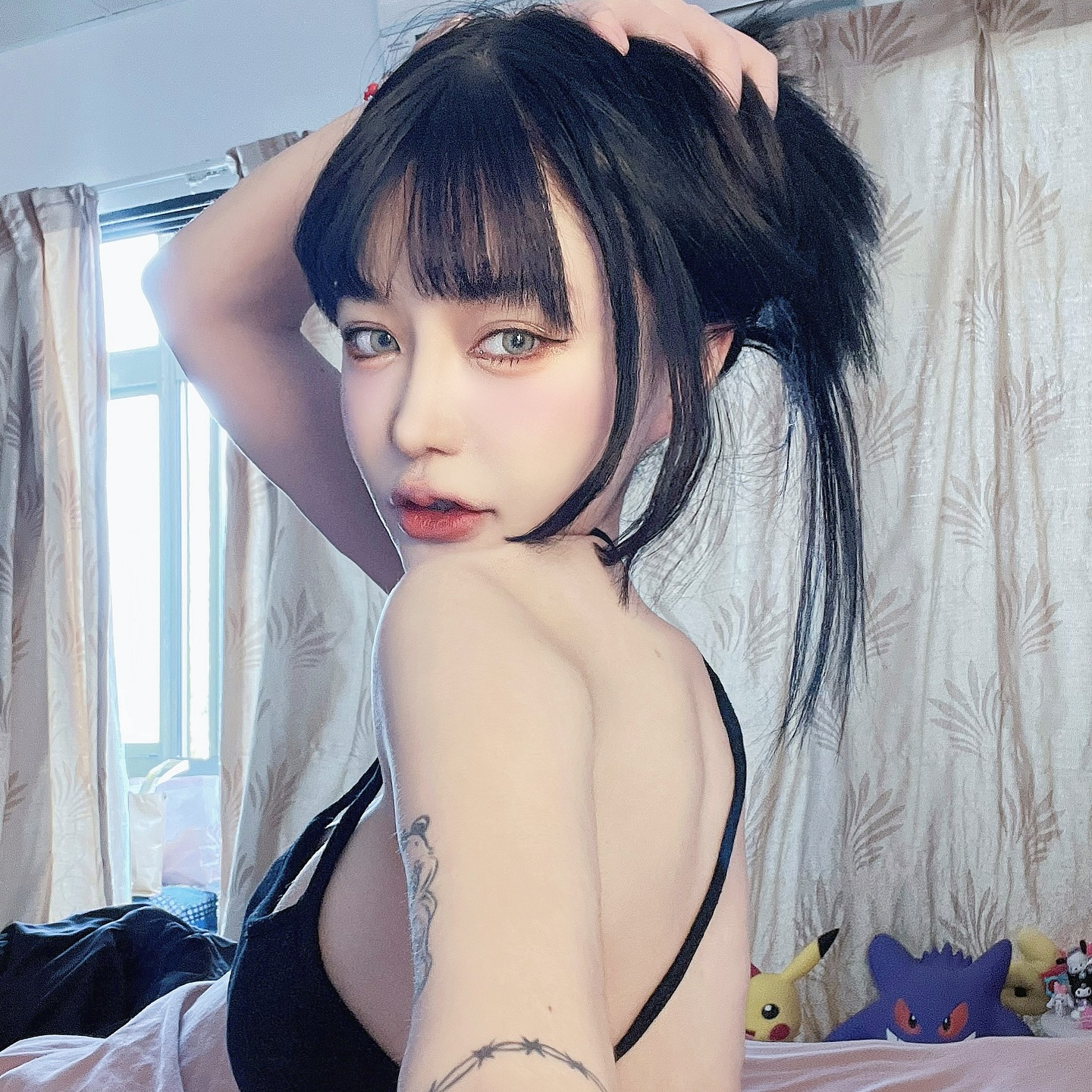 • 然後把睡衣整件脫掉,直接用舌頭+手當鬧鐘,技術懶散卻精準到讓你懷疑她把「賴床功夫」練到床上!